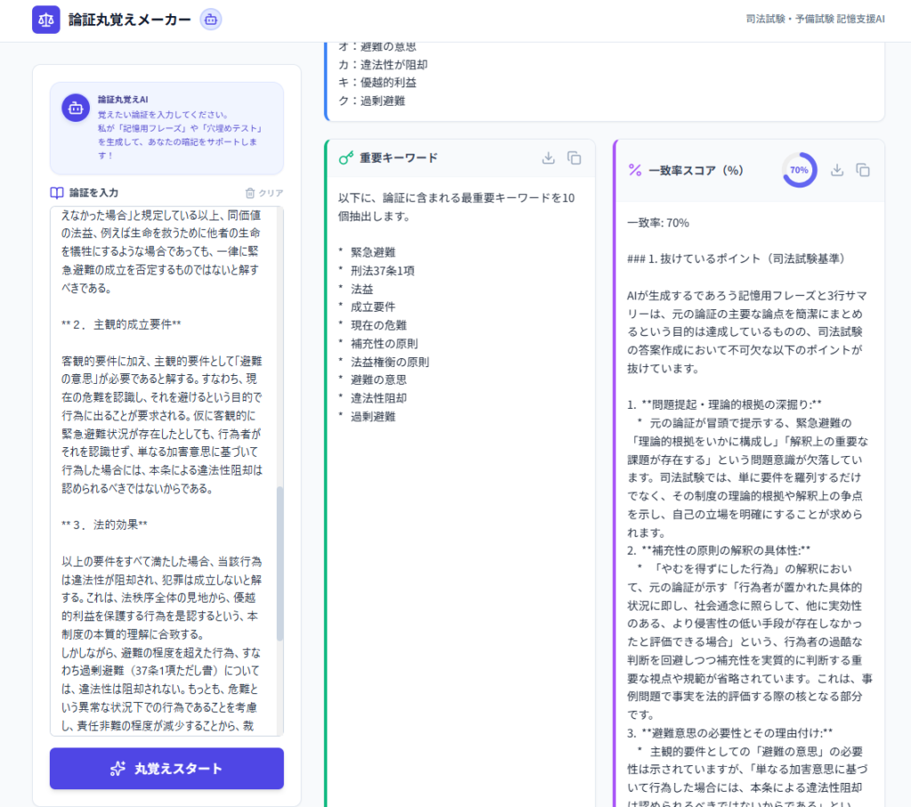 🎓 AIが論証を分解し、重要ポイントだけを抽出して「一撃で覚えられる形」に再構築。
